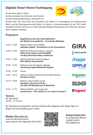Kunden schätzen die Sicherheit, den Komfort und die Energieeinsparungen, die hiermit verbunden sind. Der Trend wird sich fortsetzen. Der Markt ist in Bewegung. Die Elektroinnung Berlin und die Elektrogemeinschaft Berlin e.V. bieten in Zusammenarbeit mit der FEB GmbH deshalb ein Online-Seminar an, in dem führende Anbieter Anwendung und Funktionen verschiedener Systeme erläutern.